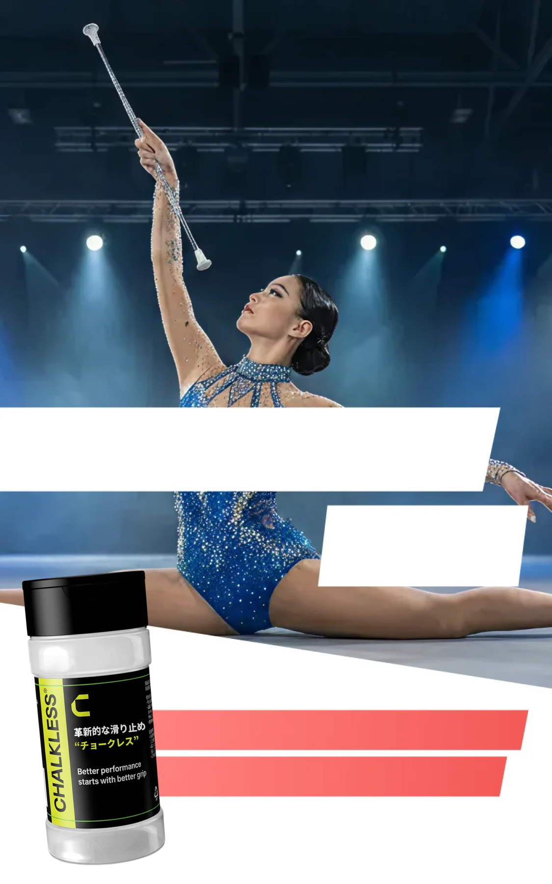 バトントワーリングの演技中に手汗でバトンが滑る悩みをチョークレスが解決します。