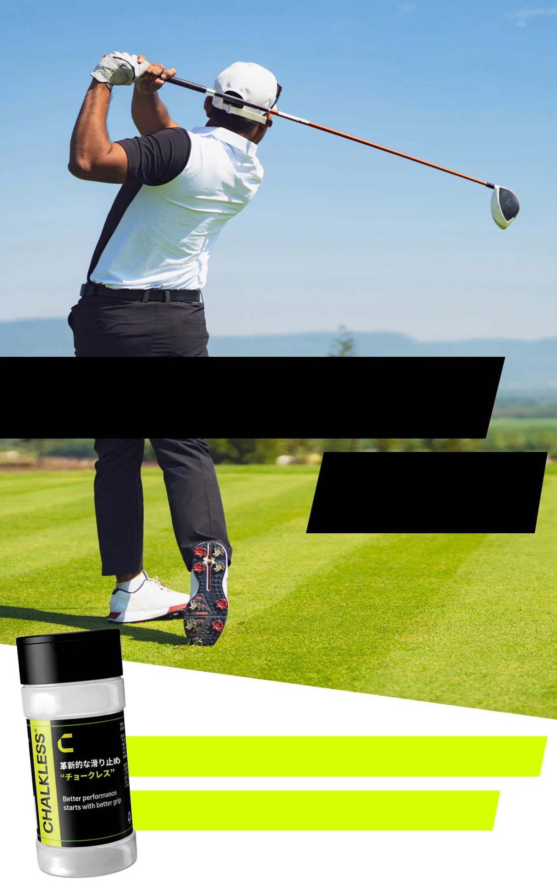 グリップにすり込んでも使えます。グリップ表面に付着した皮脂を吸収し水分を弾くことで、グリップ自体も滑りにくくなります。